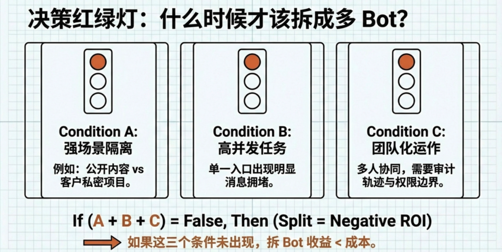 如果这三个条件都还没出现,拆 Bot 的收益通常小于成本。