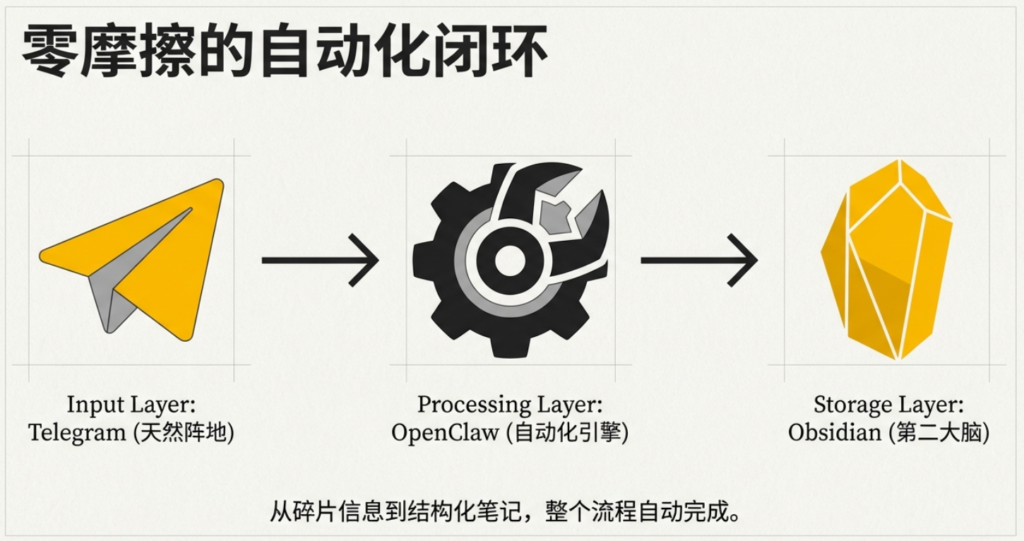 最近用Telegram + OpenClaw + Obsidian 做了一个信息炼金系统,感觉很爽。